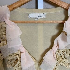 🤎 Pre-owned Women’s A’Reve Crochet Chiffon Bow V-neckline Cardigan Knit Sweater