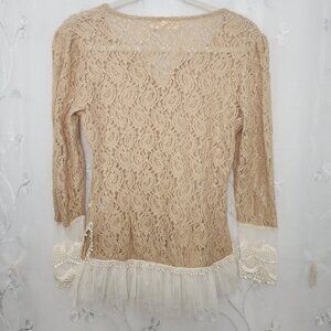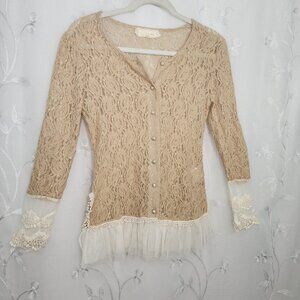 A'Reve Lace Button-up Cardigan/Blouse with Ruffled Accent