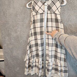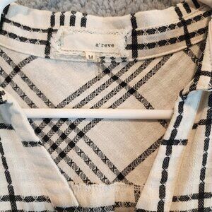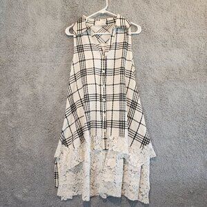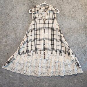 A'Reve Plaid Shirt Hi High Low White Black Lace Boho Bohemian Sz Medium Costal