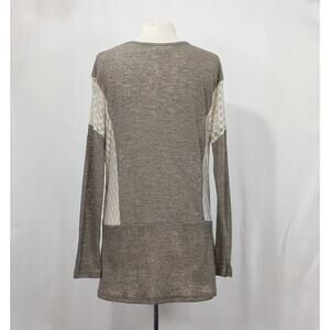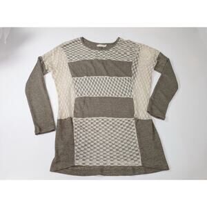 A'Reve Tunic Top Beige Cream Lace Ribbed Knit Shirt Misses Size M