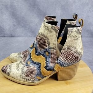 ARider Girl faux snakeskin Womens Chunky High Heel Ankle Booties V Cut Out Sz 8