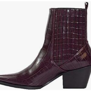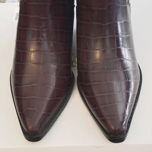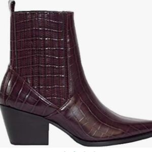 ARiderGirl Naomi Burgandy Western Croc Stacked Heel Pointed Toe Booties Size 6