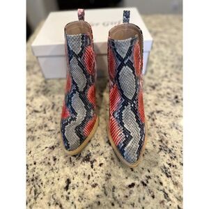 Size 6 | Multi Red Snake Print | Red Multicolor Faux Snakeskin | Shaft Height 5.3 Inches