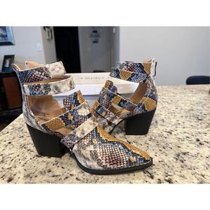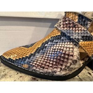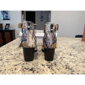 Size 5.5 | snake print multi color | Versatile, booties have a simple, sleek upper made out of synthetic leather and a low stacked heel adds some perfection to your look.
