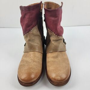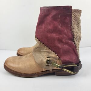 AS 98 Airstep Buckle Slouch Ankle Boots Leather Red Tan Boho Size 38 EU