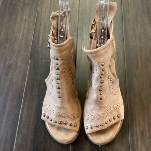A.S. 98 Womens Markie EU38 US 7.5 Tan Leather Studded Whipstitch Booties Sandals