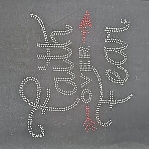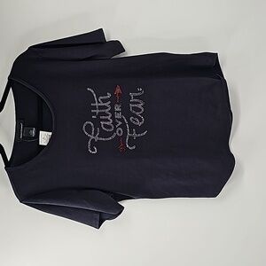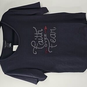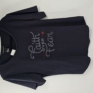 AS Faith Over Fear Black Short Sleeve T-Shirt Top w Red & Silver Crystal