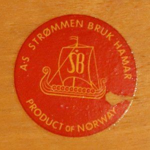 A.S. STRØMMEN BRUK HAMAR Vintage Wooden Sewing Box With, Draws, Legs & Handle