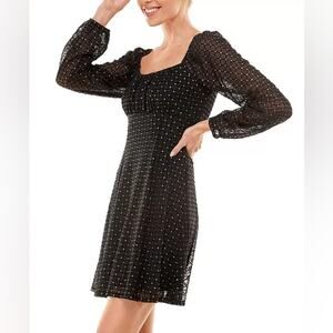 AS U WISH Juniors' Emma Mesh Fit & Flare Dress Black/Gold Sz L
