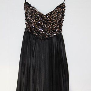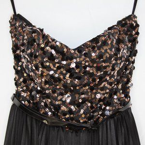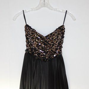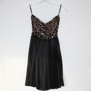 AS U WISH SEQUIN PLEATED MINI DRESS SZ M JRS BLACK GOLD BELT PARTY COCKTAIL PROM