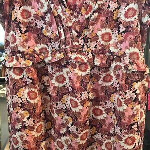 AS U WISH Size Large Pink‎ Floral Surplice V-Neck Ruffle Waste Dress Fairy