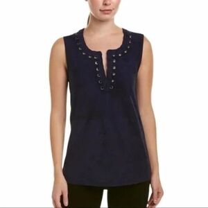 AS by DF Crusoe Navy Suede 100% Leather Women's Sleeveless Top size small