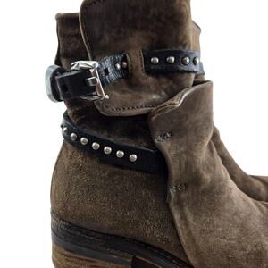 AS98 Ankle Boots Womens 7.5 8 (38) Brown Suede Black Leather Studded Rocker Edgy