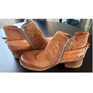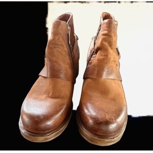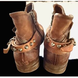 AS98 BROWN LEATHER MOTO ANKLE BOOTS