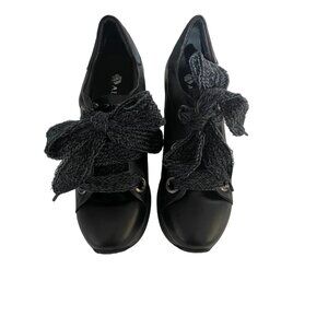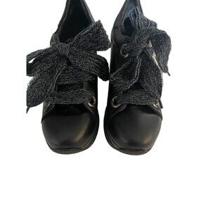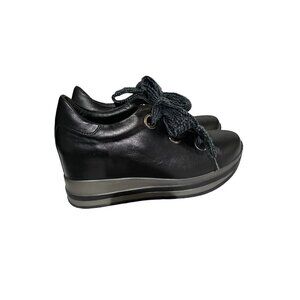 A.S.98 Black Leather Lace Up Platform Wedge Ankle Booties Women's Shoes