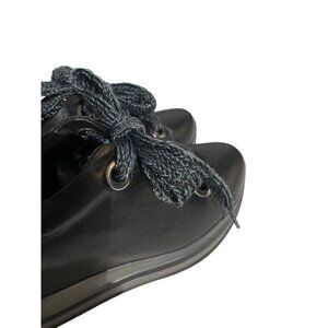 Stylish and versatile ankle booties perfect for adding a touch of edgy sophistication to any outfit. These black leather booties feature a unique lace-up design with thick, woven laces and a comfortable platform wedge heel. With metallic eyelets, they offer secure adjustability. Perfect for everyday wear, a night out, or adding some flair to your travel wardrobe.