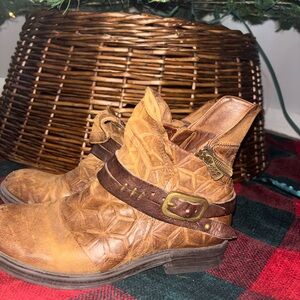 2 pairs of A.S.98 boots size 38. (US size 7.5) the first pair (first 5 pics) are smooth leather with zipper and embossed details. The second pair (the last 3 pics) are a slouchy suede. Both pairs in good used condition . I bought them both here and never wore them