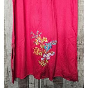 ASAPO Red Embroidered Sleeveless DRESS Floral Flowers Cotton Maxi Shift W Large