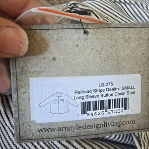 ASD Living Blk/Wht Vtg. Railroad Stripe Long Sleeve Server Shirt, NWT, Sz. S