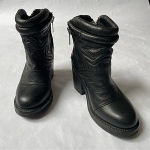 ***when I look at these, I see stars; celestial leather work, chunky hardware, zips on both sides—badass boots from Bloomies but just a bit too small for me