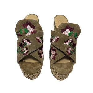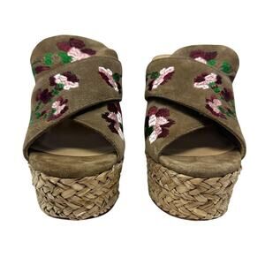 ASH Bahia Mules Embroidered Brown Suede Platform Heel Slide Wedge Size 39 US 9