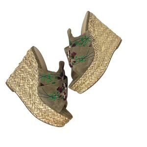 ASH Bahia Brown Suede Floral Platform Wedge Espadrille Sandals