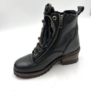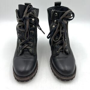 ASH Black Leather Lug Sole Boots Lace Up Moto Ankle Booties