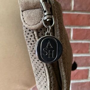 ASH, French-Italian Luxury brand.Dark Taupe suede crossbody bag with beautiful chunky metal strap.Black hardware.