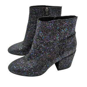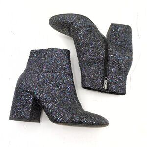 ASH Egoiste Glitter Ankle Boots Black Sparkle Block Heel Booties EU 39 US 9