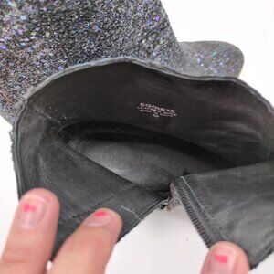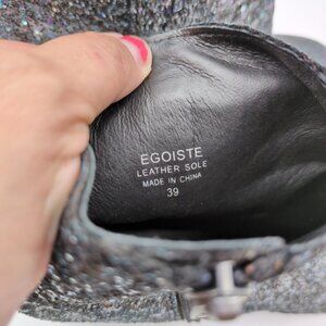 ASH boots, ASH Egoiste, glitter boots, sparkle ankle boots, glam booties, festival shoes, holiday heels, party boots, black glitter shoes, block heel boots, leather sole boots, coquette style, glamcore, y2k boots, edgy boots, holographic glitter boots, statement booties, ASH shoes 39, retro glam boots