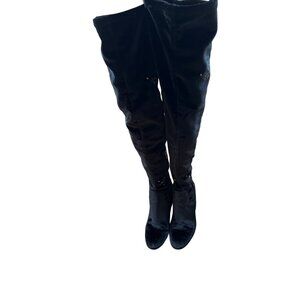 ASH Eros Velvet Boho Black Tall Boots Embroidered Over-The-Knee Sz 37 US 6.5