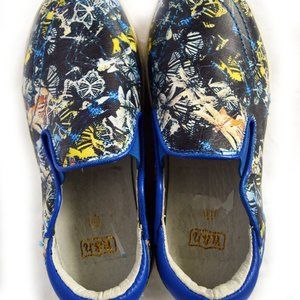 Brand new, never used. Leather upper, rubber sole. Very comfortable and nice looking, slip on sneakers.