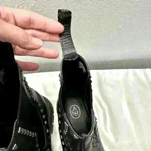 These boots are on point but like us they have some flaws. The elastic gusset on the left shoe has partially detached and there are 2 studs missing on the right boot. The good news is that those missing studs are on the inside of the boot and nowhere near as noticeable. The soles of these boots are in excellent condition and the leather upper only has minor creases.