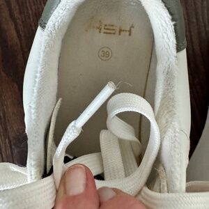 Sz EU 39 (i am a 9 and they fit). For US conversions, please reference size chart. Color/material: white/grey leather and suede Design details: perforated detailing Lace-up closure Lightly padded insole Rubber sole with traction 2.5in heel 1.5in platform