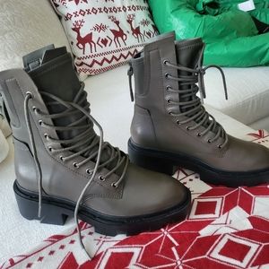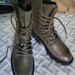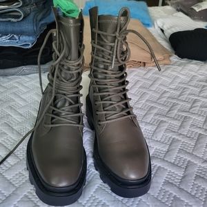 Brand new Ash Maddox platform Moto Boots in olive green color.