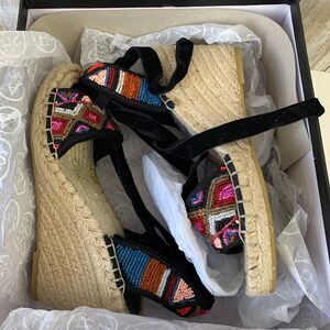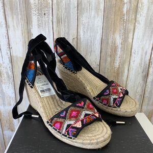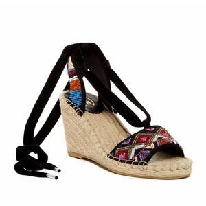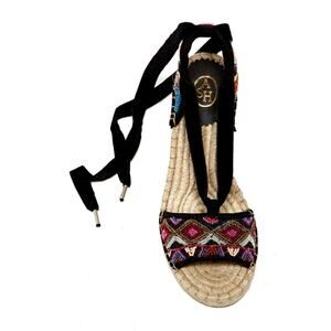 ASH Paola Espadrille Black Multi Beaded Lace Up Wedge Open Sandals Shoes 36 $198
