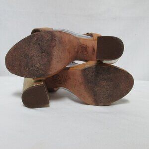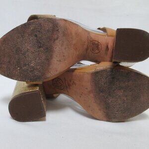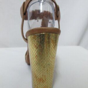 ASH Rachel tan gold buckle platform block heels sandals Size Sz 39 8