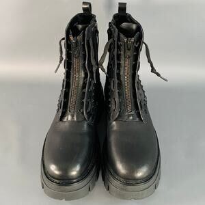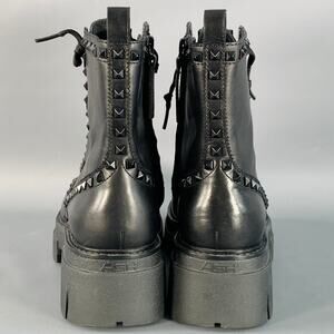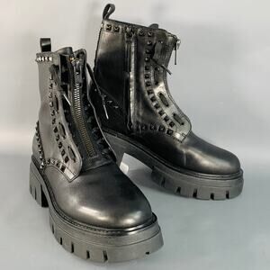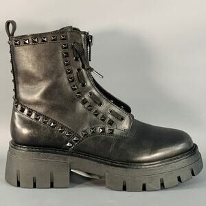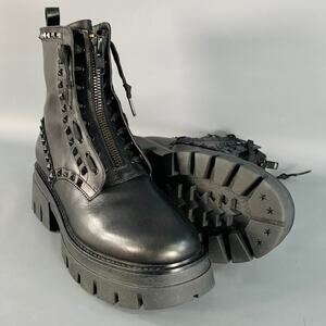 ASH Size 10 Lynch Studs Black Studded Leather Lug Sole Zip Up Combat Boots