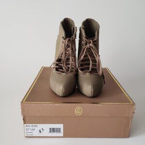 ASH Size 37.5 (US 7) Khaki Side Zipper Lace Up Ankle Boot Heels With Box