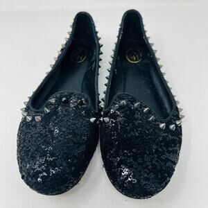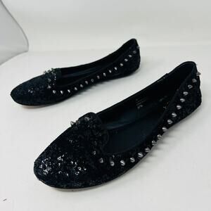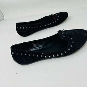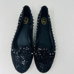 ASH Studded Flats Casual Shoe Black Micro Sequin Slip On - 37.5