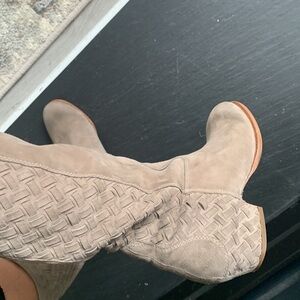 ASH Titan taupe size 37 Suede Boots woven heels winter tall