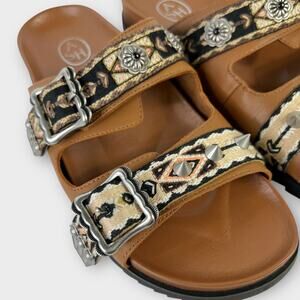 ASH Ulysse Boho Woven Strap Buckle Studded Slide Slip-on Sandal Size 39 US 8.5/9