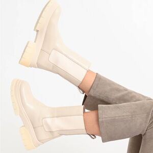 ASH Women's Leather Cream Beige Platform Combat Chelsea Boots Size 39 US 9 NWT