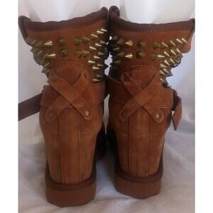 Excellent condition Ash Yahoo wedge spiked ankle boots. Calf Suede. Fuzzy interior. Buckle on side. Heel height: 3.75 - 4.0 in