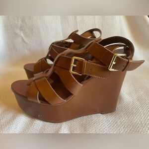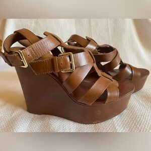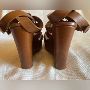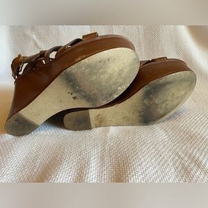 Warm brown leather. Adjustable straps. Size 39. Previously lived but lots more love to give. There are some scuffs (please see photos) but shoe polish may help