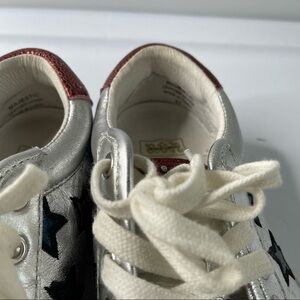 This statement style is crafted from premium leather with luxurious leather lining and comfy rubber sole. Eye-catching star motif decorating each side in vibrant textured leathers, this style is finished with a beige suede toe trim and hand-distressed finish for a vintage, pre-worn look. White laces pull the look together to finish off an eccentric shoe for making a fashion statement. Silver leather upper leather lined rubber sole lace up star motif ash branding suede toe sole height-2.5 cm