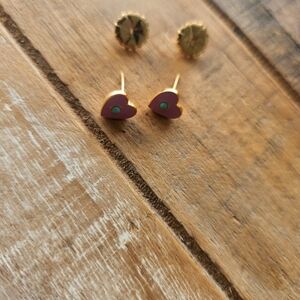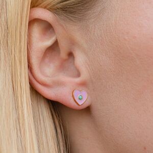 Add a touch of whimsy and color with this mini heart enamel and semi-precious stone stud earrings. Gold dipped posts to ensure the safest wear for the littlest ears.