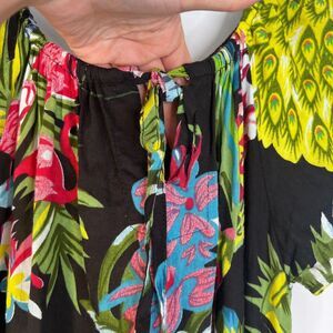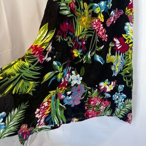 ASHA Black Floral Tropical Print Short Sleeve Asymmetrical Summer Dress Size LG