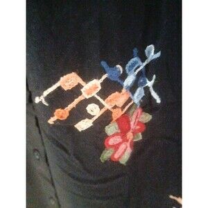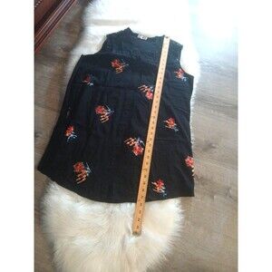ASHA women's size M 100% cotton embroidered floral black button-down tunic dress is a stylish and versatile piece perfect for various occasions such as travel, work, or casual wear. Made of a lightweight cotton material, this knee-length dress features a V-neckline, sleeveless design, and black floral embroidery accents. The bohemian theme adds a trendy touch, making it ideal for wearing in the spring or summer seasons. With a button front closure and machine washable, this dress is a convenient and fashionable choice for women looking for a blend of comfort and style. Good Condition!