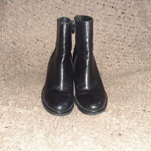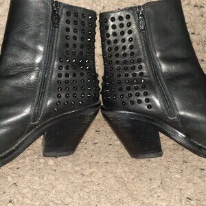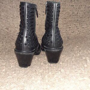 ASH-Booties-Black Leather-Side Zip-Stacked Heel-Black Studs-Sz 37-Excellent